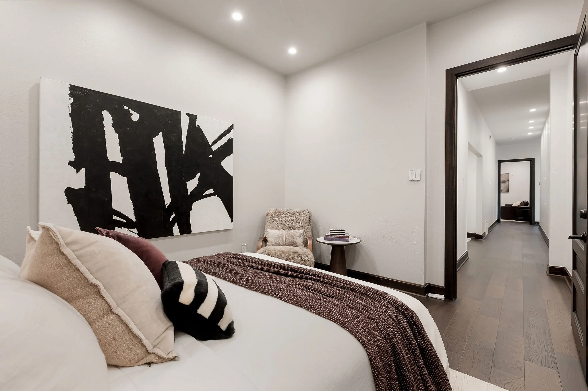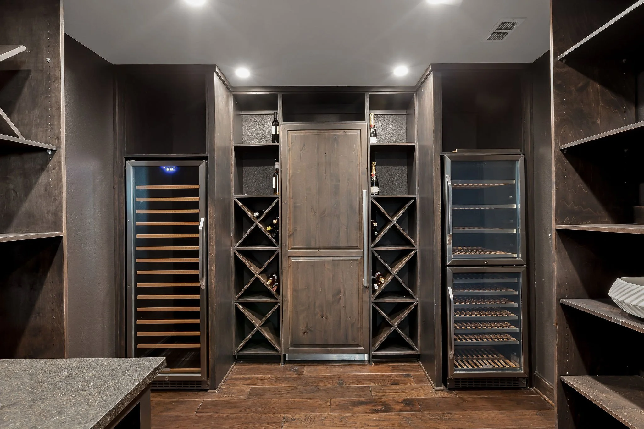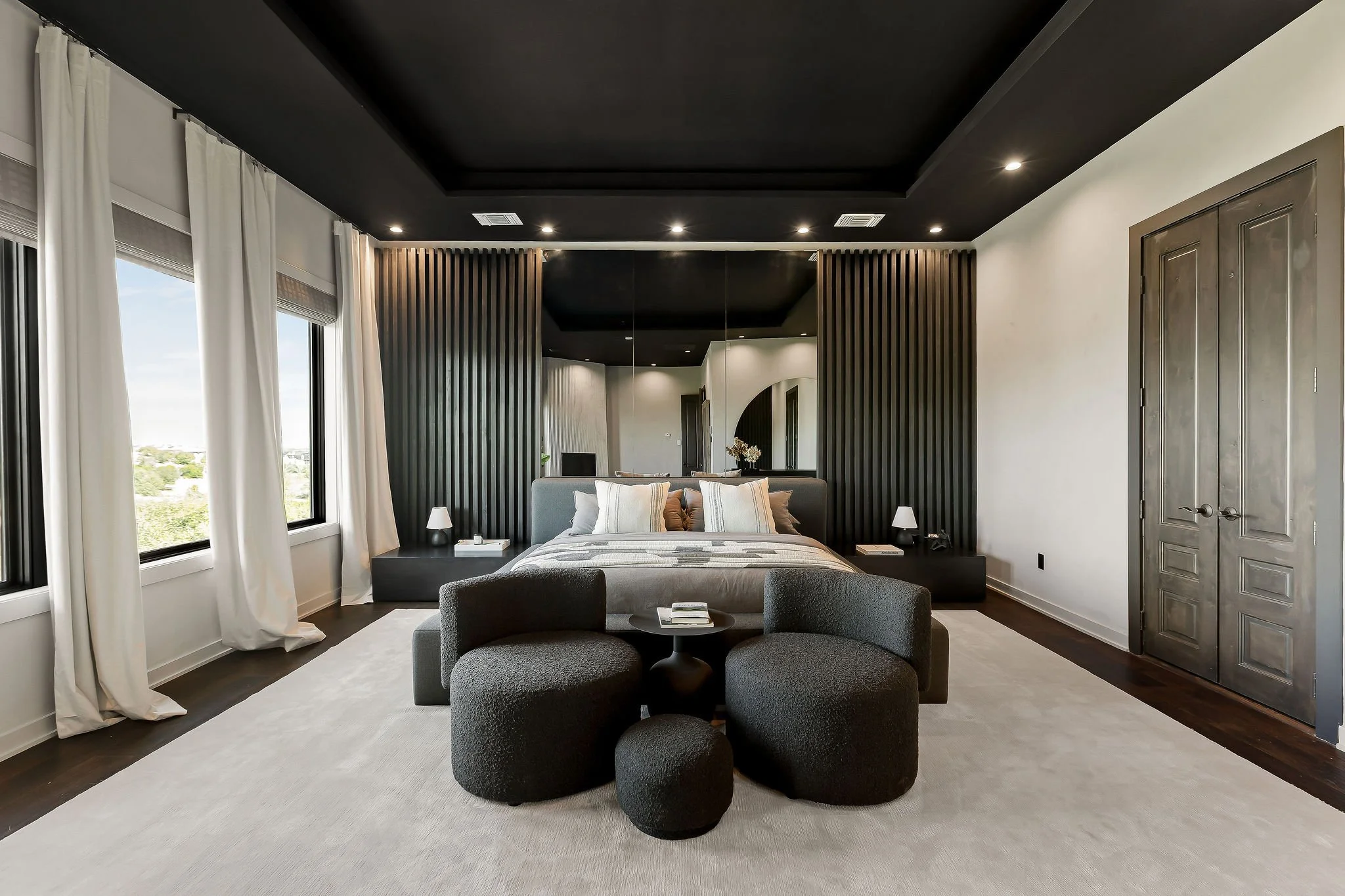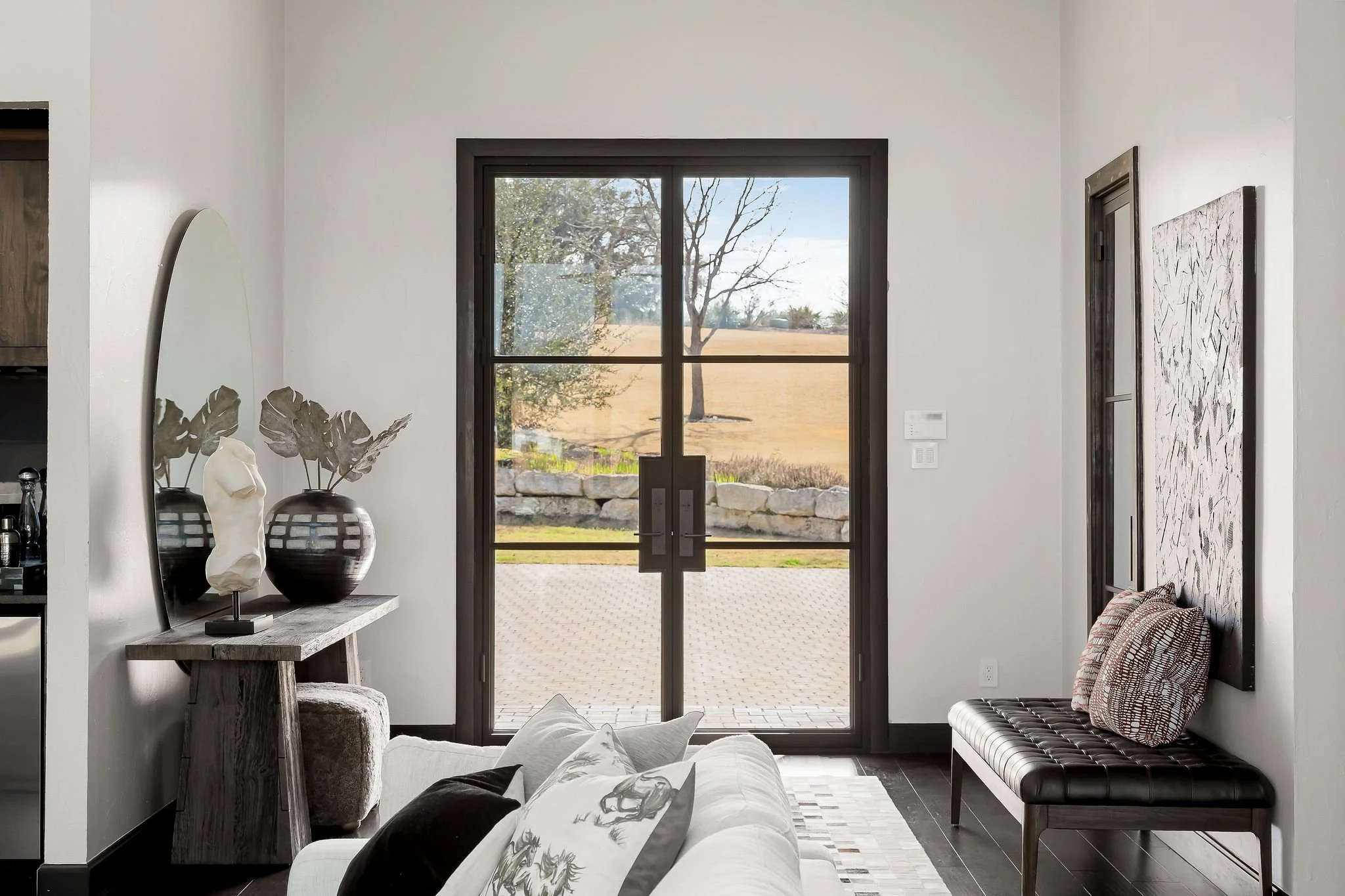 A dramatic arrival unfolds through grand double doors into soaring cathedral ceilings framed by Douglas fir beams and expansive floor-to-ceiling windows. Stone, metal, and rich natural woods create a refined palette that feels timeless, grounded, and quietly luxurious. Designed for both grand entertaining and everyday ease, the kitchen is beautifully appointed with custom knotty alder cabinetry, natural stone surfaces, professional Thermador appliances, and a fully equipped butlerβs pantry and wine room. Multiple living and gathering spaces flow seamlessly throughout the home, including a sunroom wrapped in glass, a sophisticated library, media room, and inviting secondary suites. The ownerβs retreat is a sanctuary unto itself, featuring exquisite architectural detailing, a fireplace, and a spa-inspired bath with a multi-function Roman shower designed for complete relaxation.