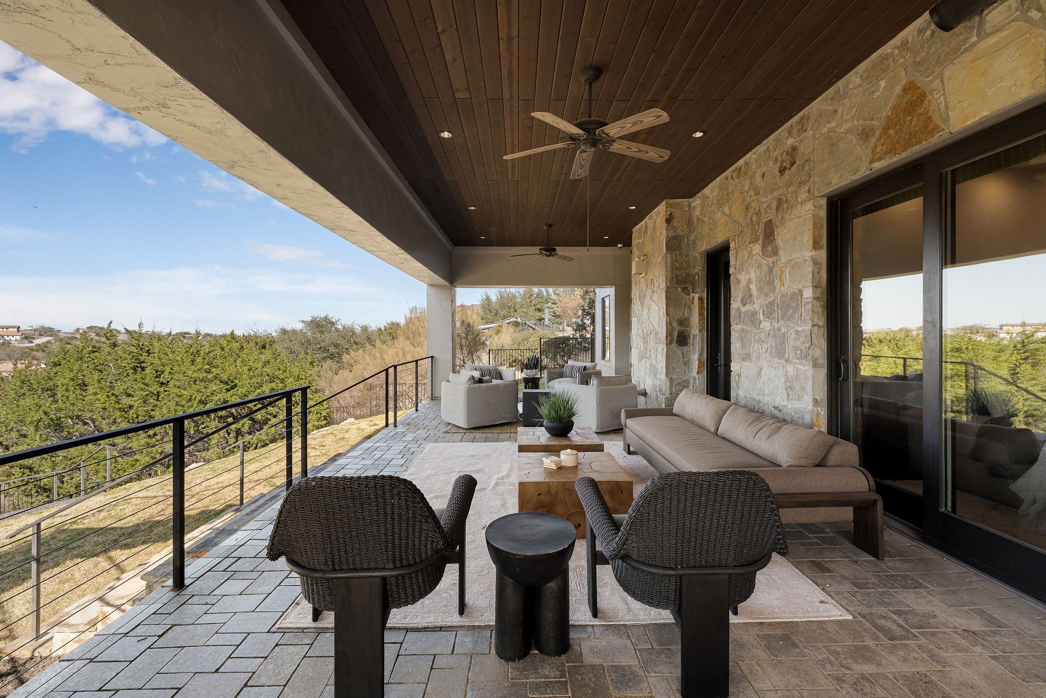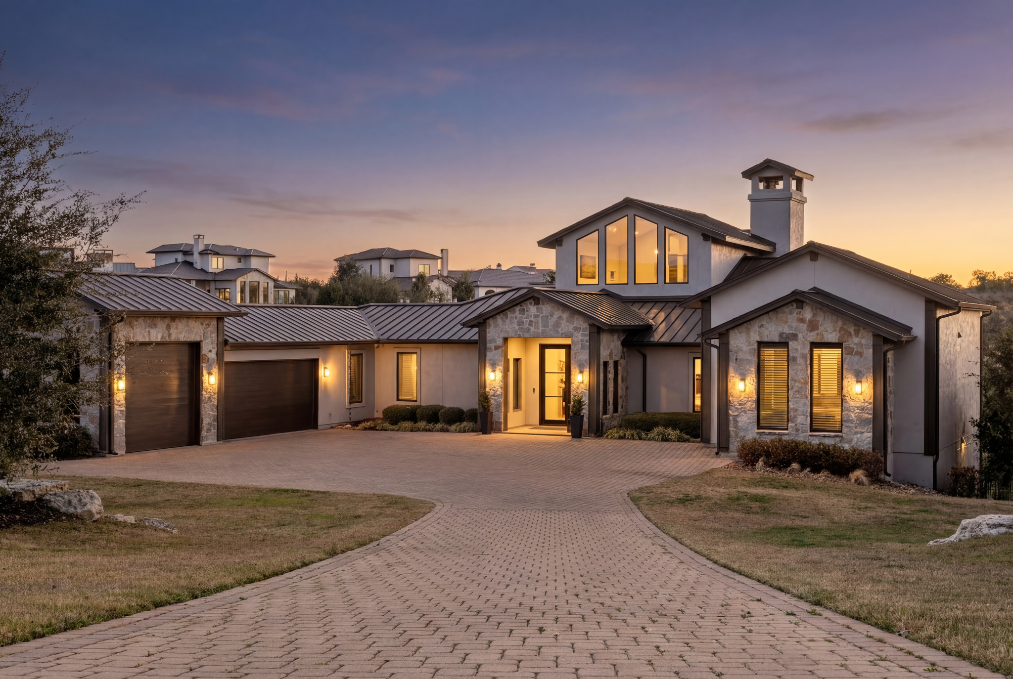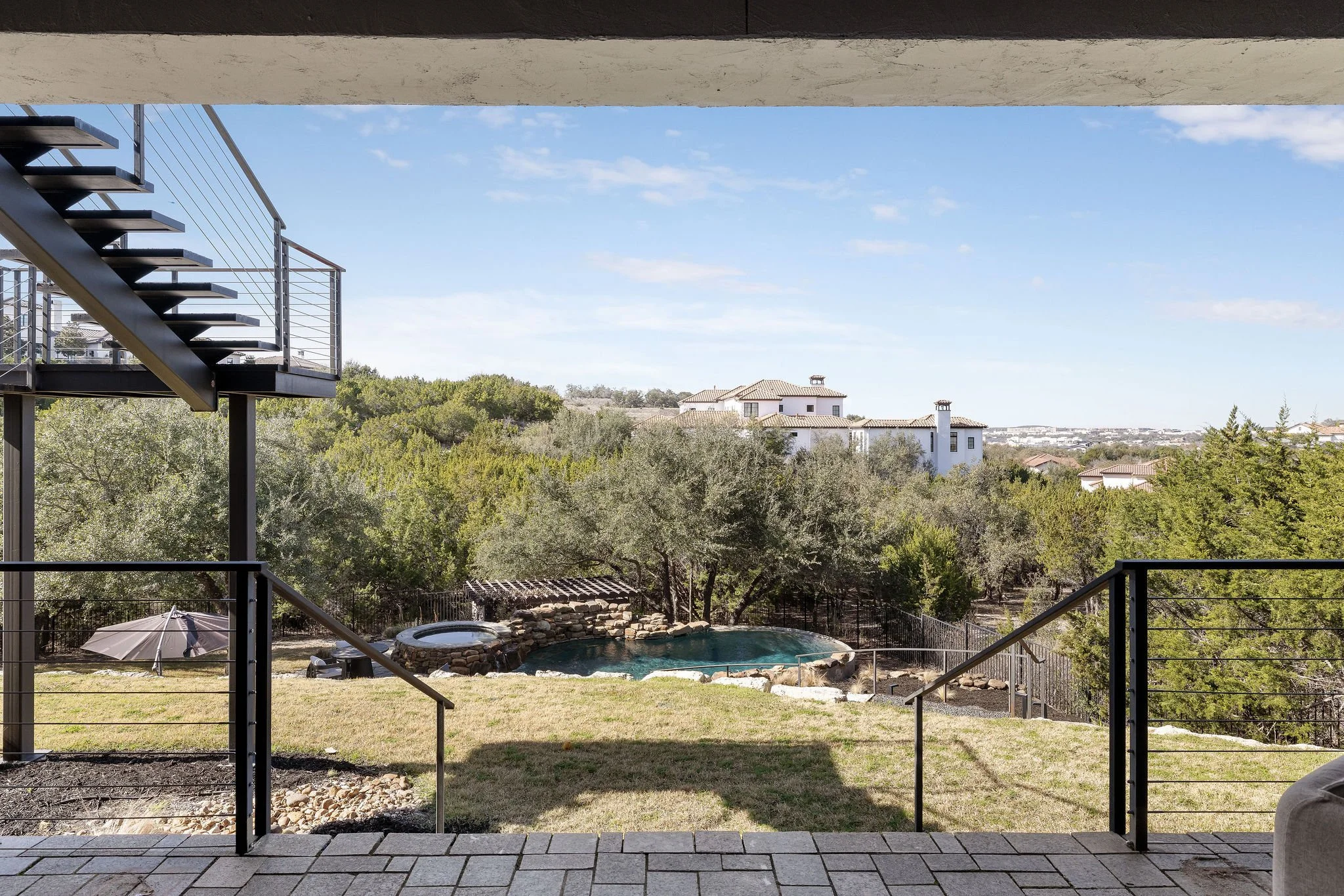 Set atop a commanding 1.36-acre hillside within the prestigious gates of Spanish Oaks, this extraordinary estate captures sweeping Hill Country views and a sense of privacy rarely found so close to the city. This residence blends contemporary sophistication with warm natural textures, creating a home that feels both architecturally striking and effortlessly livable.