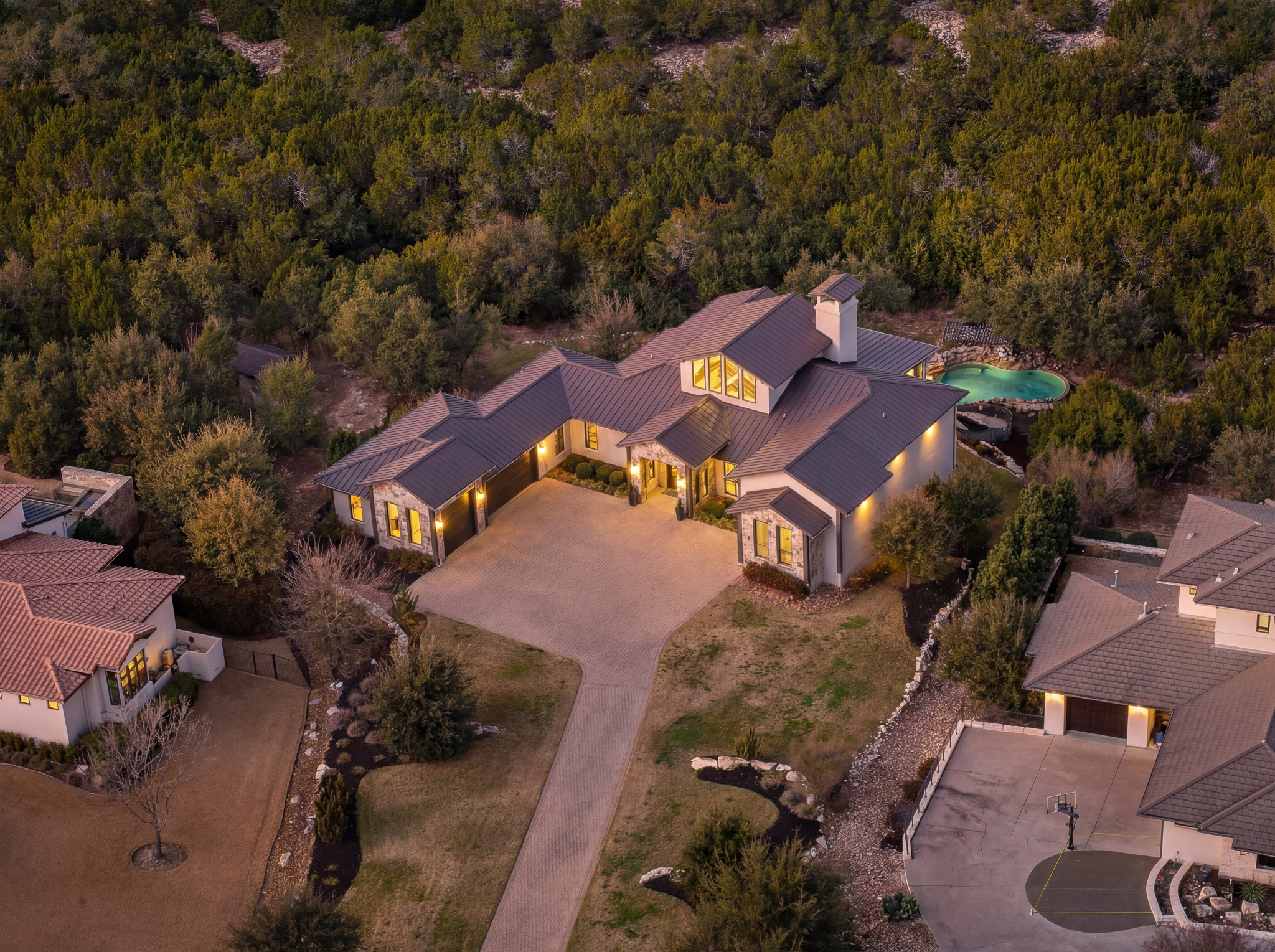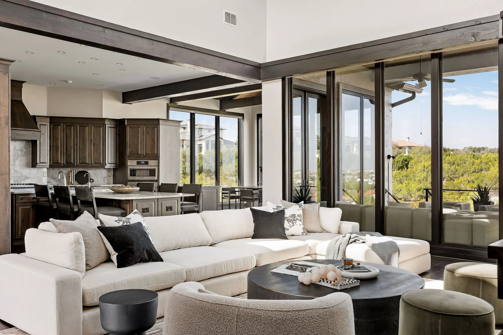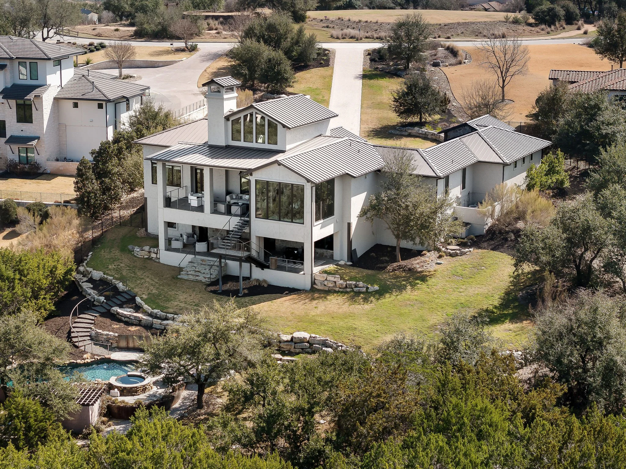 Set atop a commanding 1.36-acre hillside within the prestigious gates of Spanish Oaks, this extraordinary estate captures sweeping Hill Country views and a sense of privacy rarely found so close to the city. This residence blends contemporary sophistication with warm natural textures, creating a home that feels both architecturally striking and effortlessly livable.