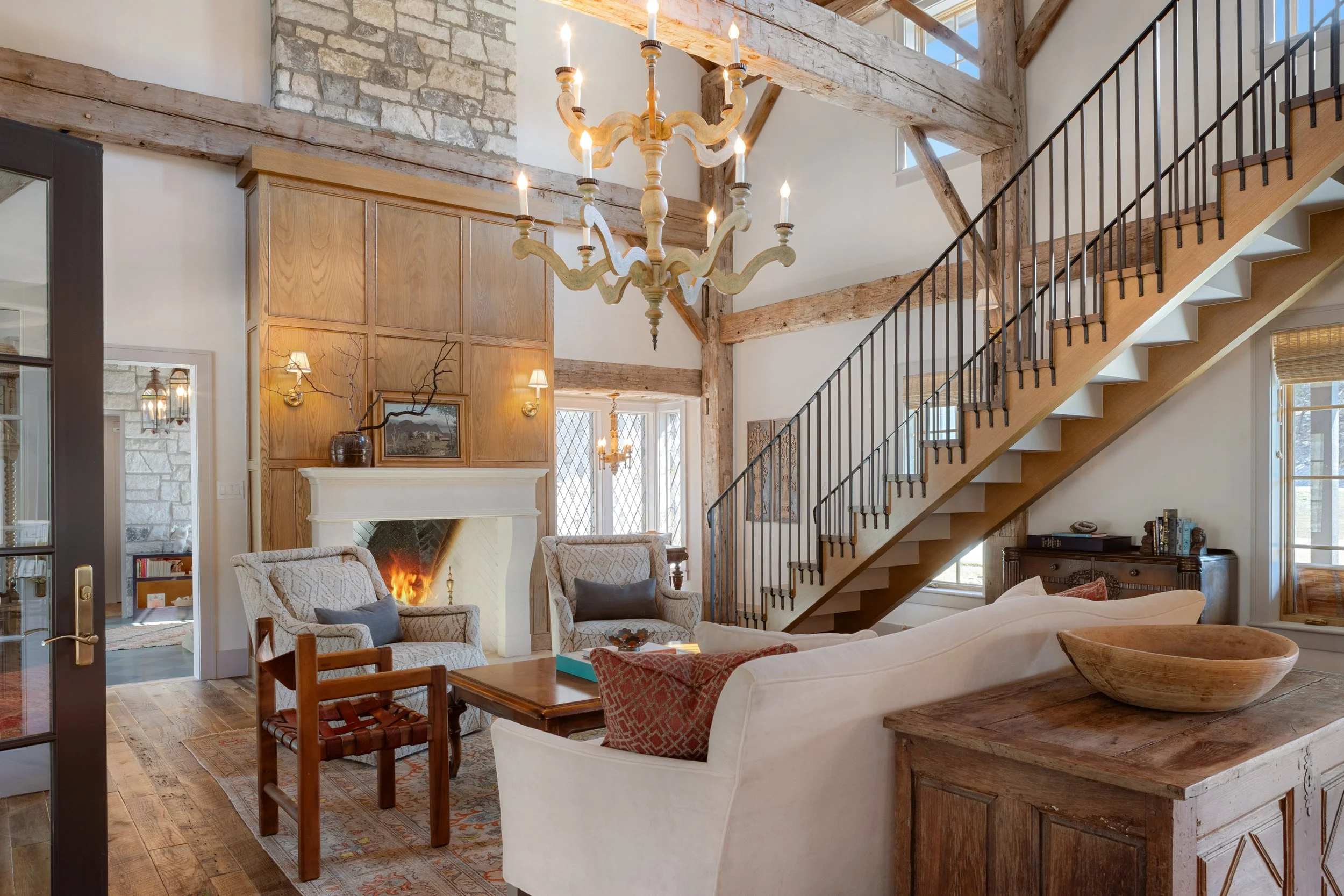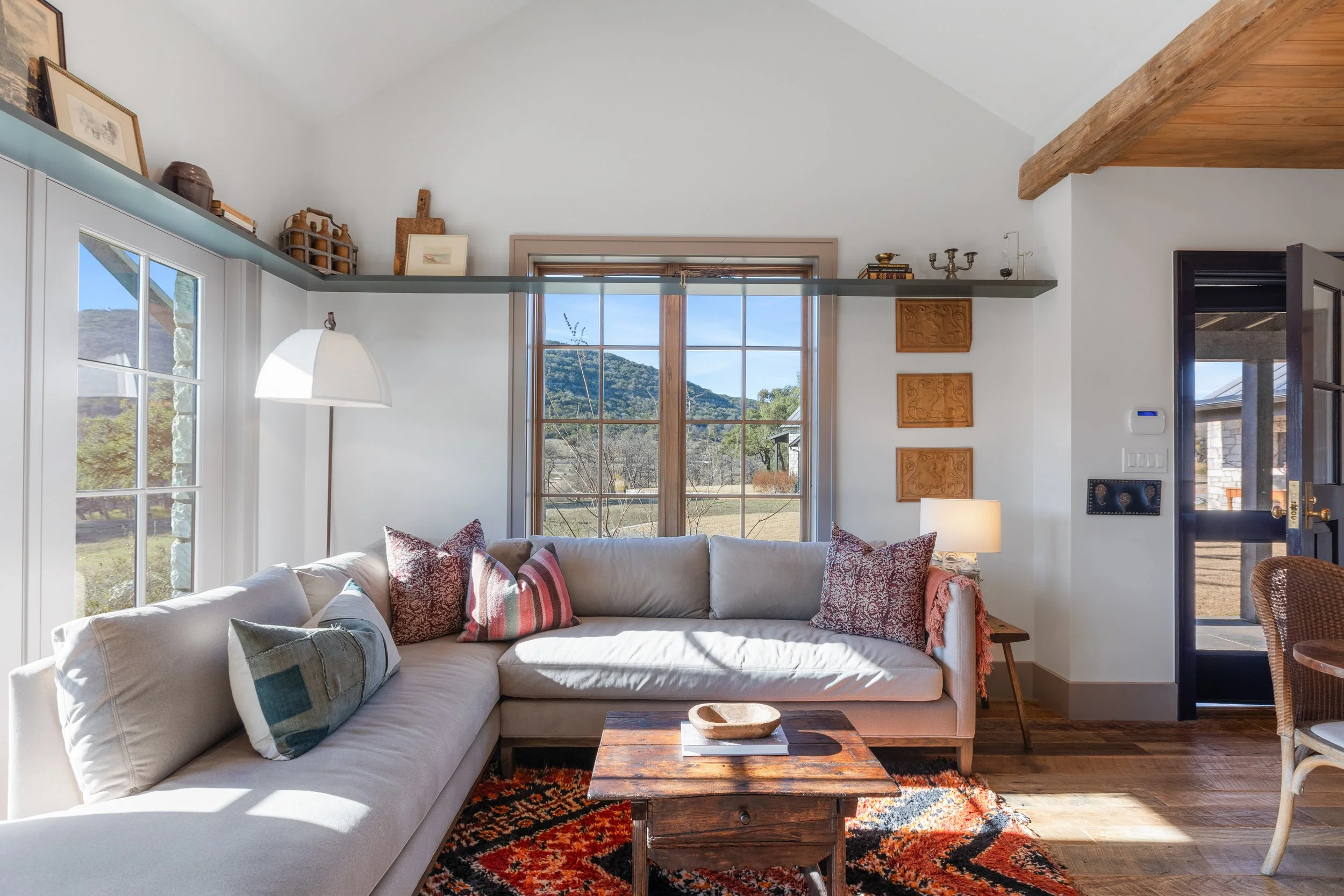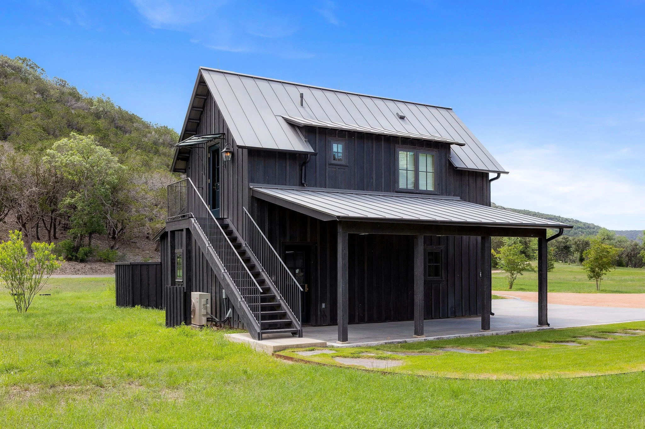 The main house exemplifies superior craftsmanship and timeless design across its 4 bedrooms and 4.5 bathrooms. The grand living area features soaring ceilings adorned with reclaimed wood beams sourced from an 1800s barn, creating a warm and inviting ambiance. Expansive stained glass windows bathe the space in natural light, while the stone fireplace serves as a focal point for gatherings. The show-stopping kitchen, equipped with top-of-the-line appliances and custom cabinetry, offers panoramic views of the Frio River, enhancing the culinary experience. The property’s exterior harmoniously blends with its natural surroundings. The main house showcases a design that complements the scenic landscape, offering unobstructed views of the river and hills beyond. Outdoor living spaces include multiple patios and decks, perfect for entertaining or peaceful reflection by the water's edge.