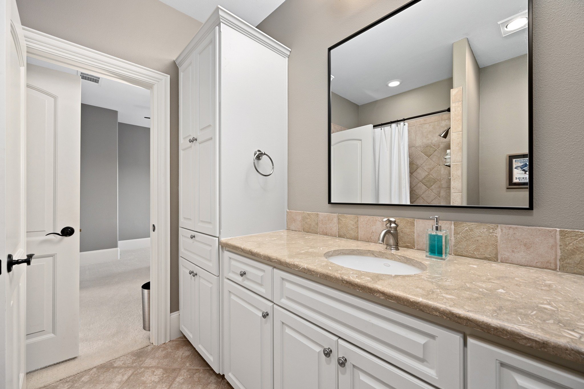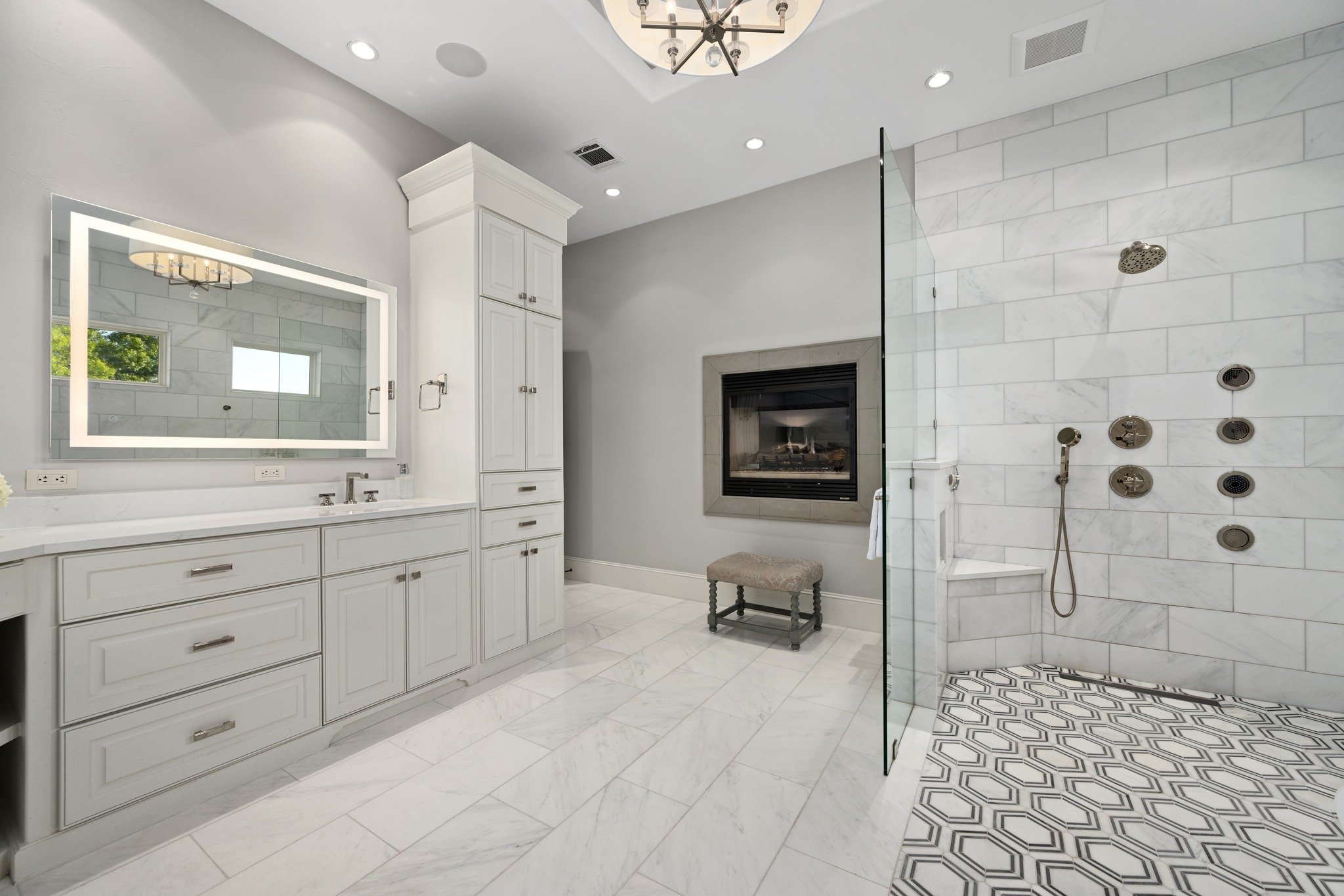 The primary suite offers a true sense of retreat, with generous proportions and a fully remodeled bath. Throughout the rest of the home, every bedroom includes a walk-in closet, most feature ensuite baths, and the abundance of built-in storage, from under-stair storage to a media closet and custom built-ins, adds a level of livability that is increasingly hard to find.
