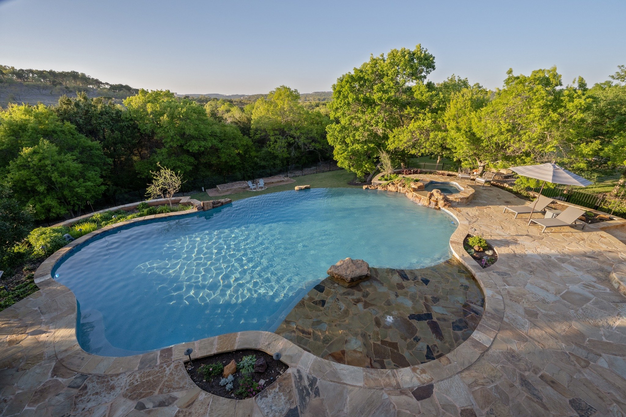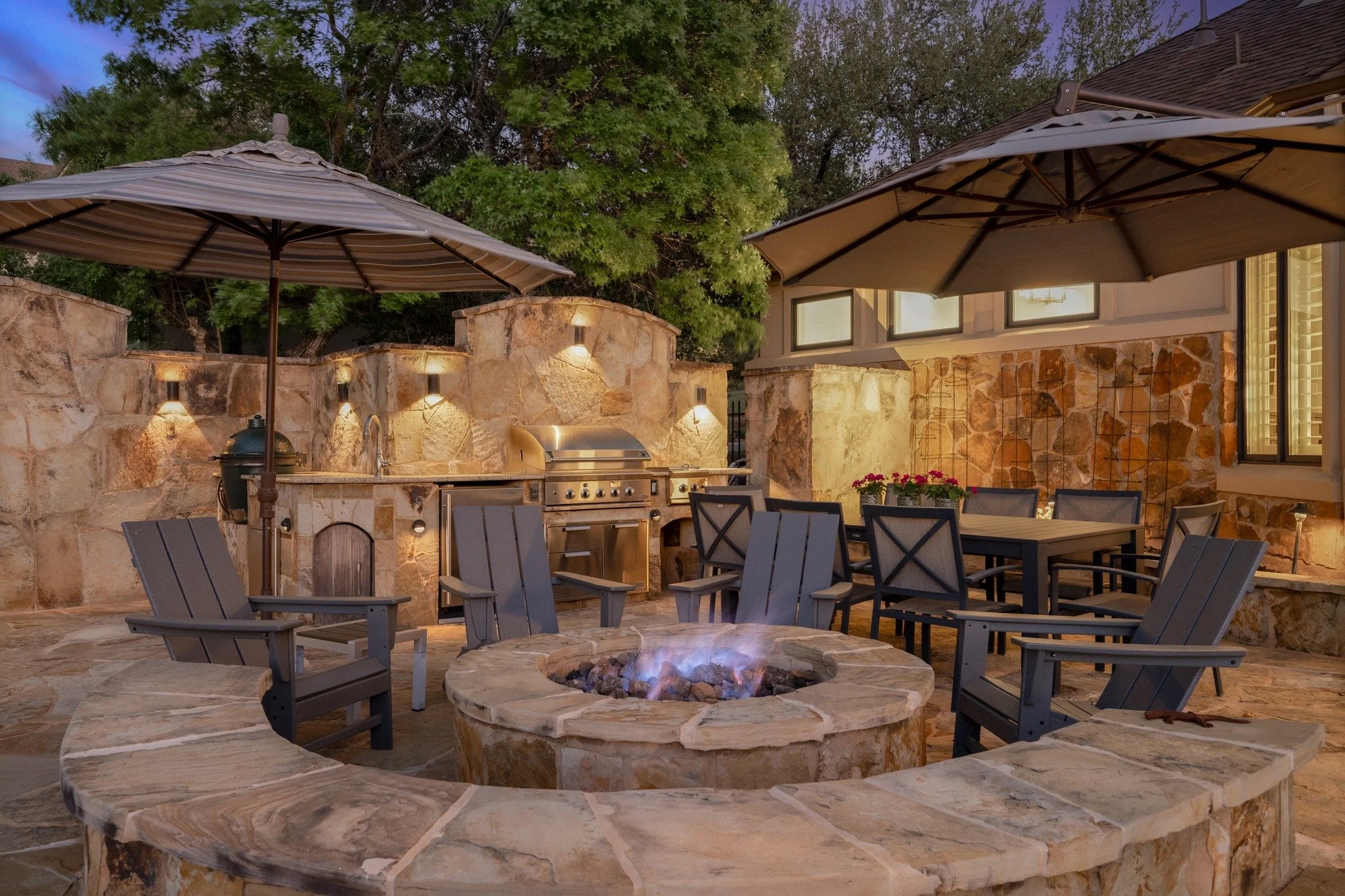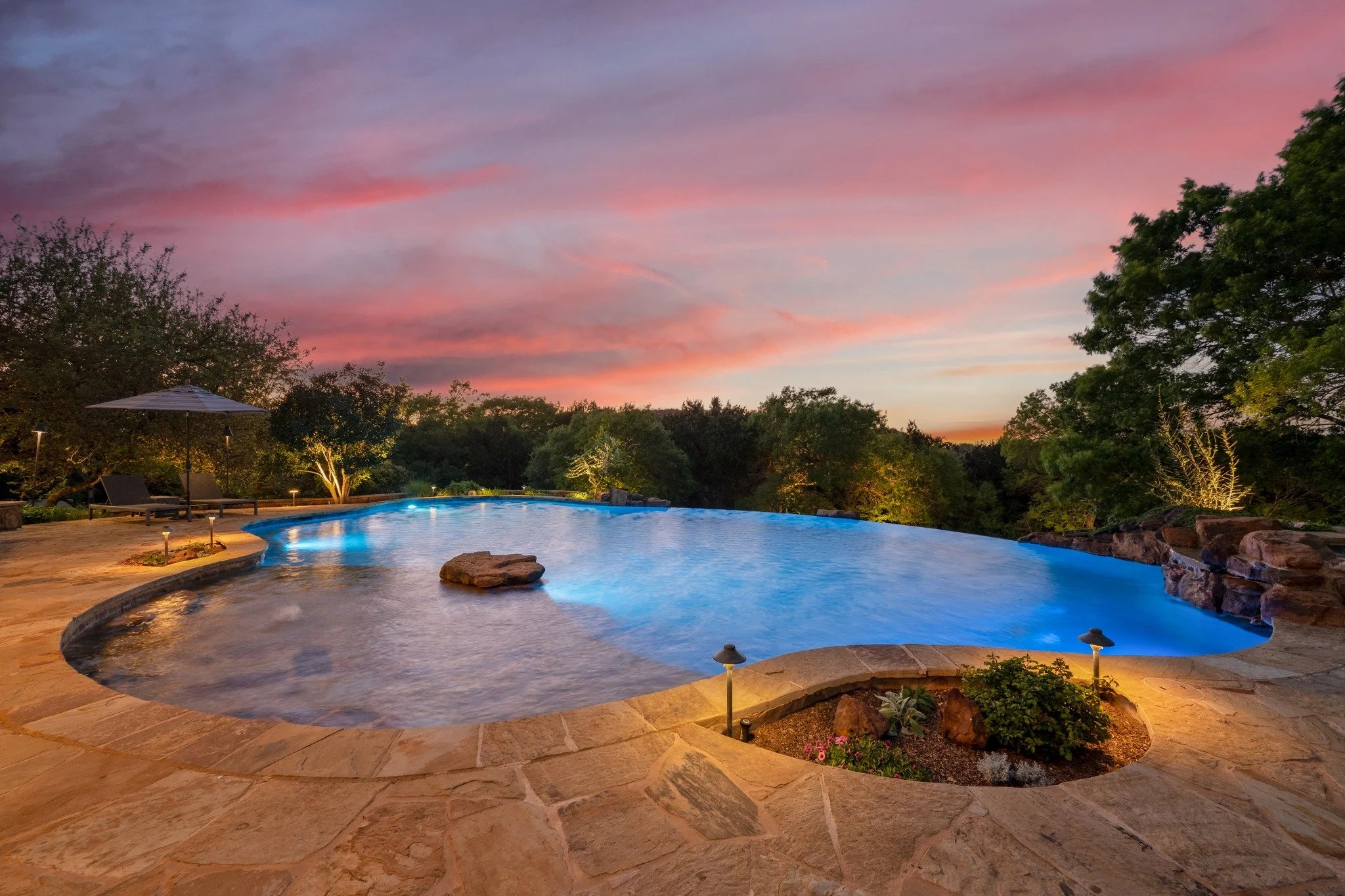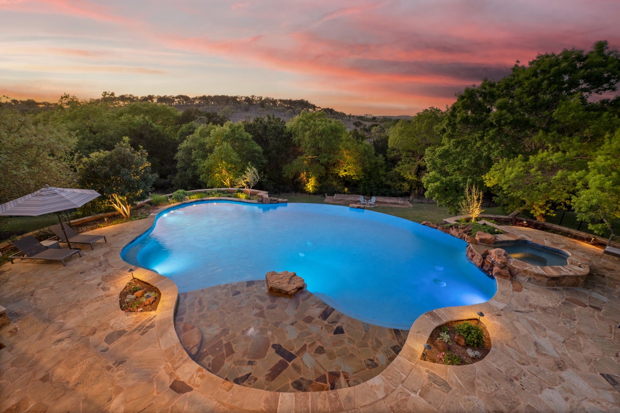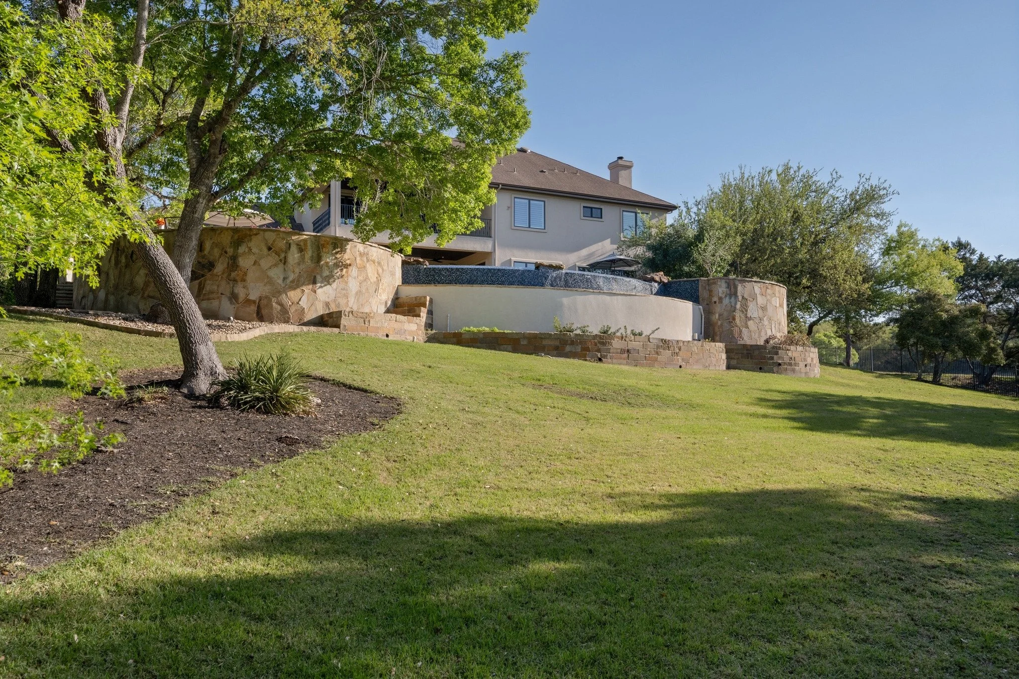 Outdoor living is equally compelling. A covered patio with projector, TV, integrated speakers, built-in grill, and Green Egg overlooks the resurfaced pool and spa, creating a setting designed for effortless entertaining. Beyond the pool, an expansive manicured lawn brings a rare amount of flat, usable green space to the backyard, ideal for play, gathering, or simply enjoying the setting. A separate fire pit area offers yet another place to gather, while mature landscaping and gated access to the neighboring reserve create a sense of privacy and expansiveness. Altogether, this home offers a rare sense of ease, privacy, and everyday comfort in one of Austin’s most desirable settings.