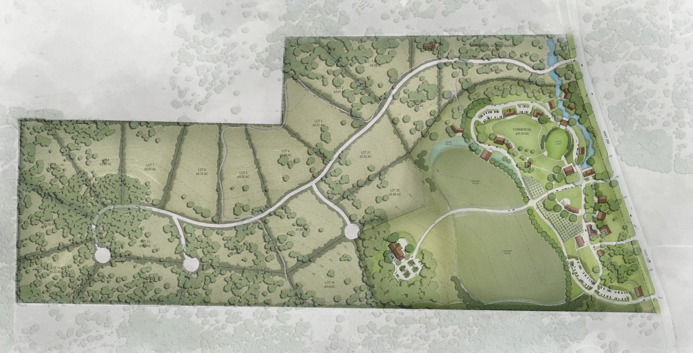 Set against the backdrop of the renowned 290 Wine Trail, Hye Farms offers a canvas for visionary investors and lifestyle seekers alike. Picture vineyards stretching across rolling hills, luxury accommodations nestled in nature, and tasting rooms alive with laughter and shared experiences. Here, the possibilities flow as freely as the wine.